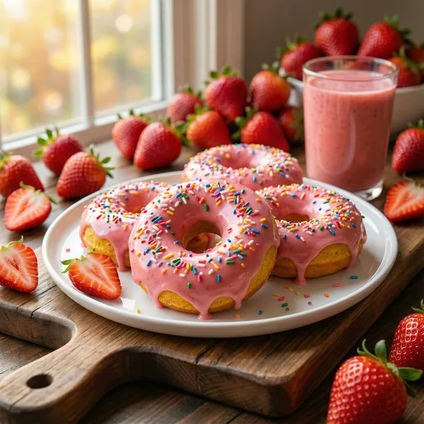 Pretty in pink, these strawberry frosted protein donuts are a sweet and fruity treat with 18g of protein, making them an ideal choice for fueling your day or post-workout recovery. Packed with high-quality whey protein, they offer a satisfying balance of macros that support muscle repair while satisfying your sweet tooth. The donuts boast a tender, moist crumb with a delicate crumbly texture that melts in your mouth, complemented by the luscious strawberry frosting that adds a burst of fruity flavor with every bite. Their vibrant pink hue makes them as visually appealing as they are delicious, perfect for a fun breakfast or midday snack. These donuts are versatile and can easily be made gluten-free by swapping in almond or coconut flour, or vegan by using plant-based protein powder and dairy-free frosting. For best results, be sure to measure your ingredients carefully and avoid overmixing to keep the donuts light and fluffy. Enjoy them fresh for maximum flavor and texture, or store them in an airtight container for convenient meal prep. Whether you're looking for a post-workout boost or a guilt-free indulgence, these protein donuts deliver on both taste and nutrition. All nutrition data is verified using USDA FoodData Central for accuracy.